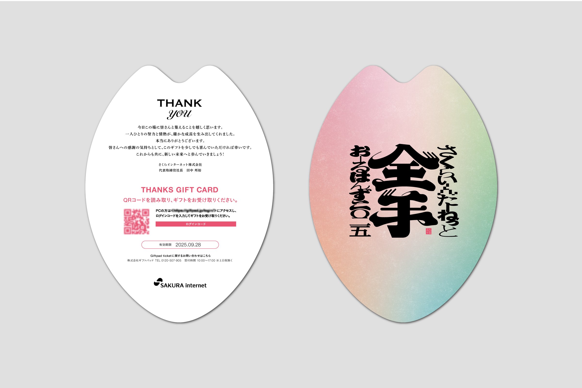 All Hands 2025 ギフトカード さくらインターネット株式会社 GRAPHIC DESIGN CREDIT Creative Direction:村上モリロウ Art Direction:村上モリロウ Graphic Design:實川愛理 Account Management:大山勝廣